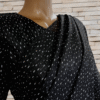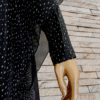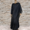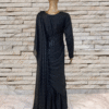 Midnight Hues is a Black Frock-saree which ensemble combines a saree’s traditional charm with a frock’s contemporary flair, offering the best of both worlds. The rich black fabric is delicately dotted with subtle patterns, evoking a sense of mystery and sophistication. The flowy silhouette drapes gracefully, while the integrated saree pallu adds a touch of classic elegance.